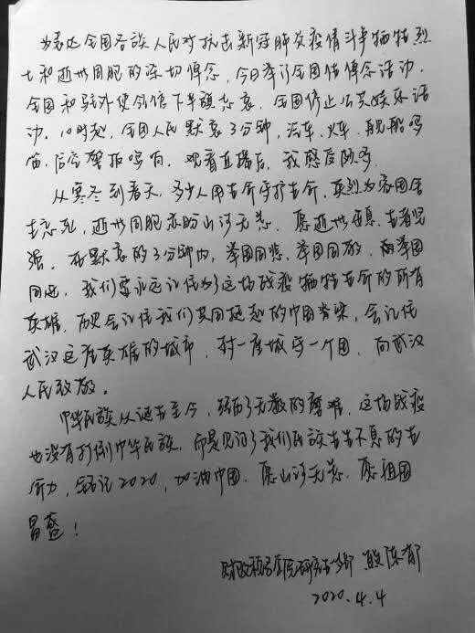 阳春三月,有人赏樱,有人葬花,有人长埋地下。虽然我所在的海外城市没有鸣笛,但我心中时刻有声声警笛,提醒我美好盛世来之不易。现在,我只想赶快回到祖国,报效祖国!