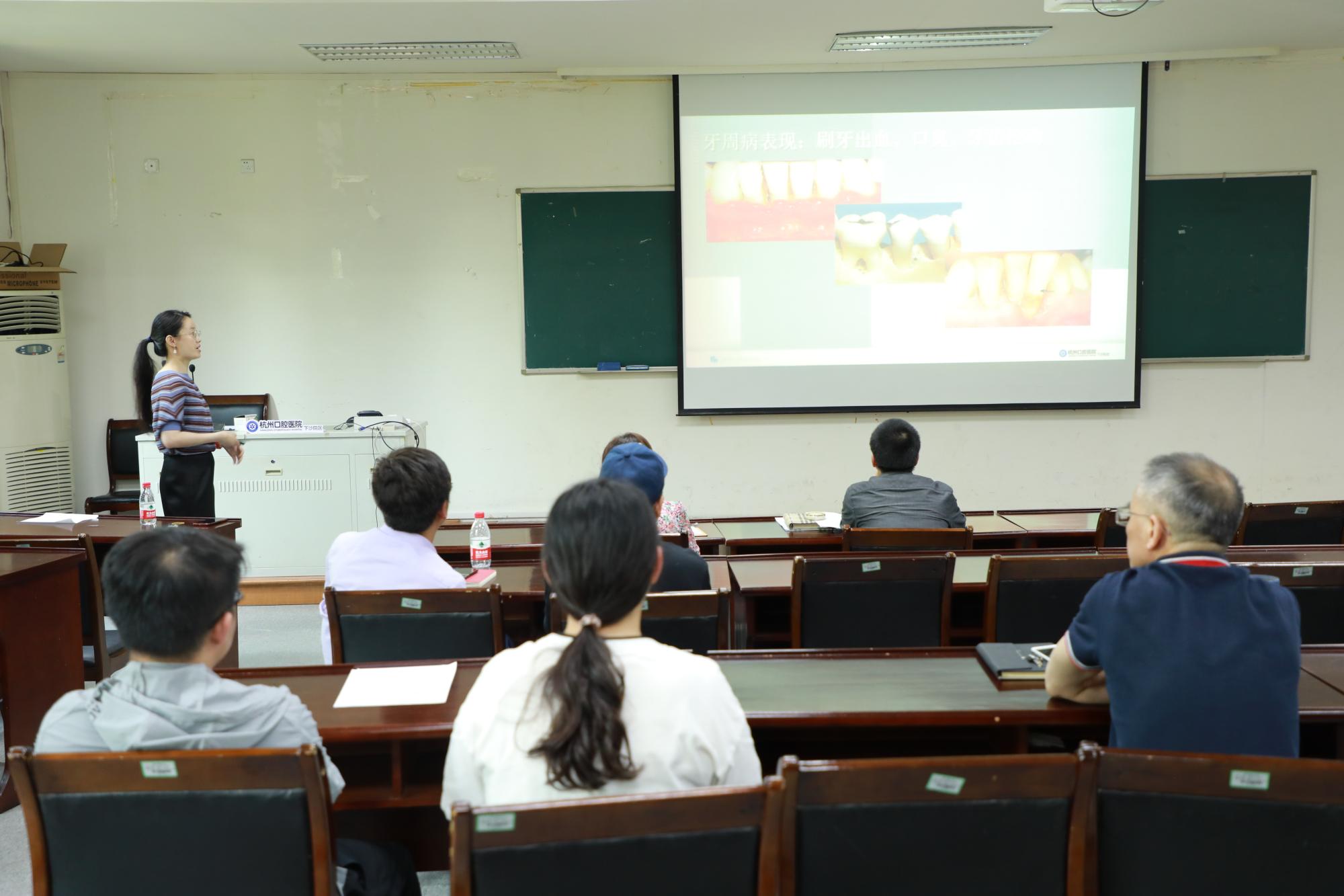 分工会特邀杭州市口腔医院下沙诊所专家信鑫副主任医师,在学院楼106教室为教工作精彩的口腔护理知识讲座,讲座由学院党委副书记徐丽玲主持。