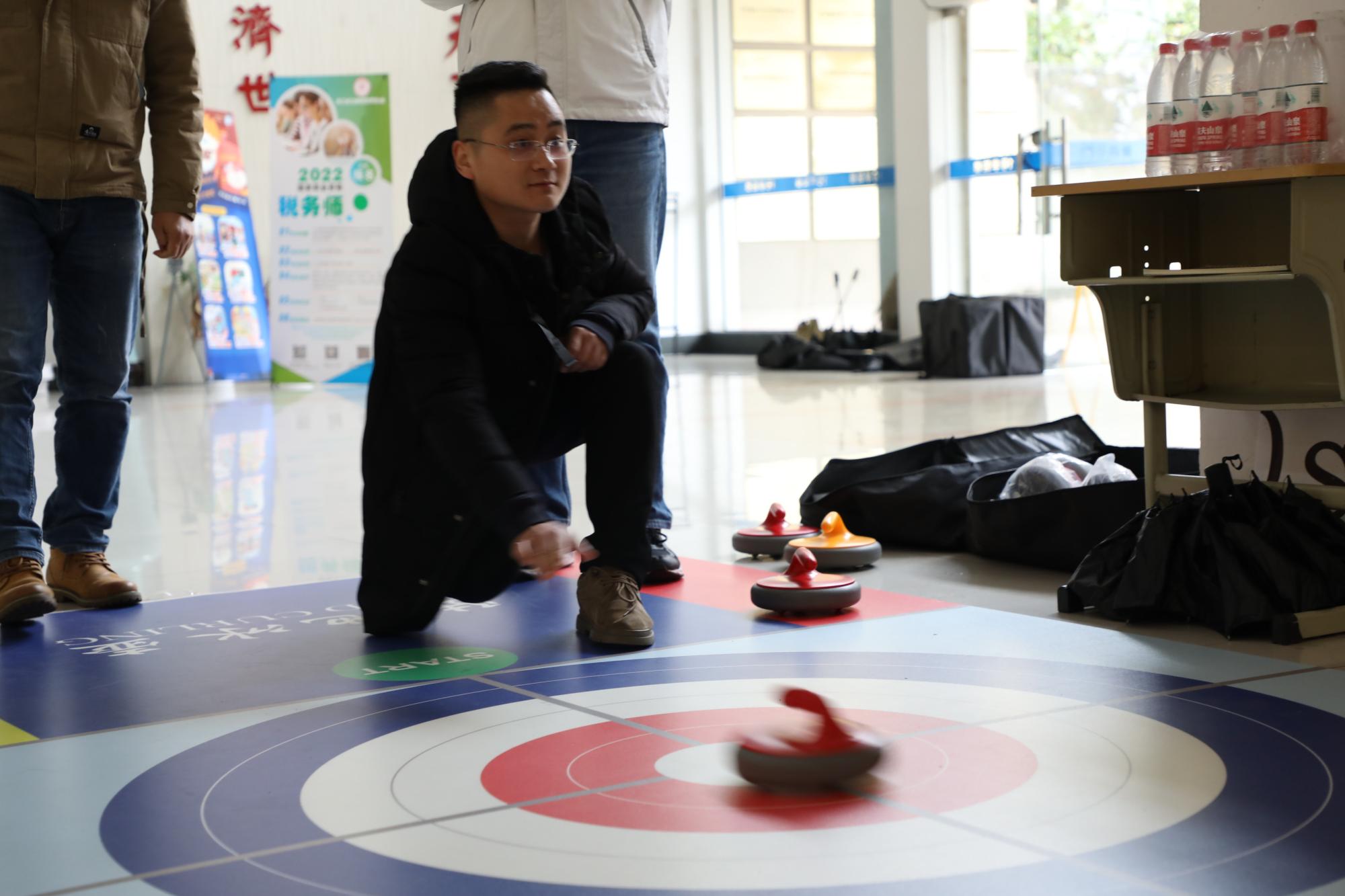 分工会于2022年12月1日举办冰壶挑战赛,学院全体教职工积极参加,体验陆地冰壶的乐趣。