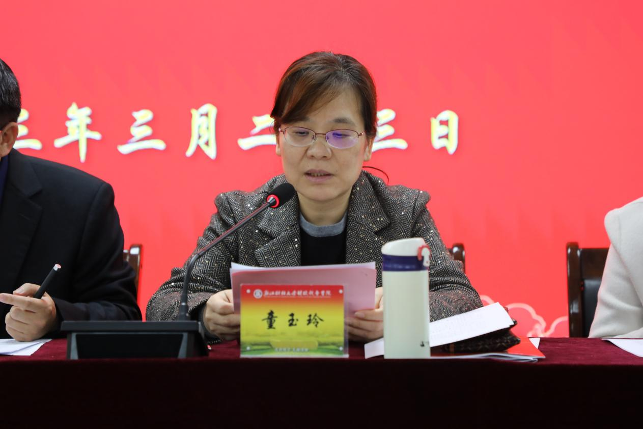 会上,党委书记童玉玲代表学院领导班子作《2022年学院工作报告》和《2022年学院财务报告》,从党组织工作,教学建设,学科、科研、研究生工作,师资队伍,学生工作,社会服务工作,院务公开,工会工作等方面对2022年的工作进行了全面总结,并分析了学院工作遭遇的瓶颈及存在的不足,对2023年学院重点工作进行了安排部署。