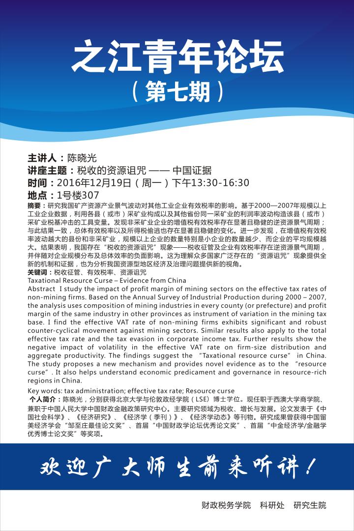 西澳大学兼中国人民大学教授陈晓光老师来我校为财税学院师生讲学