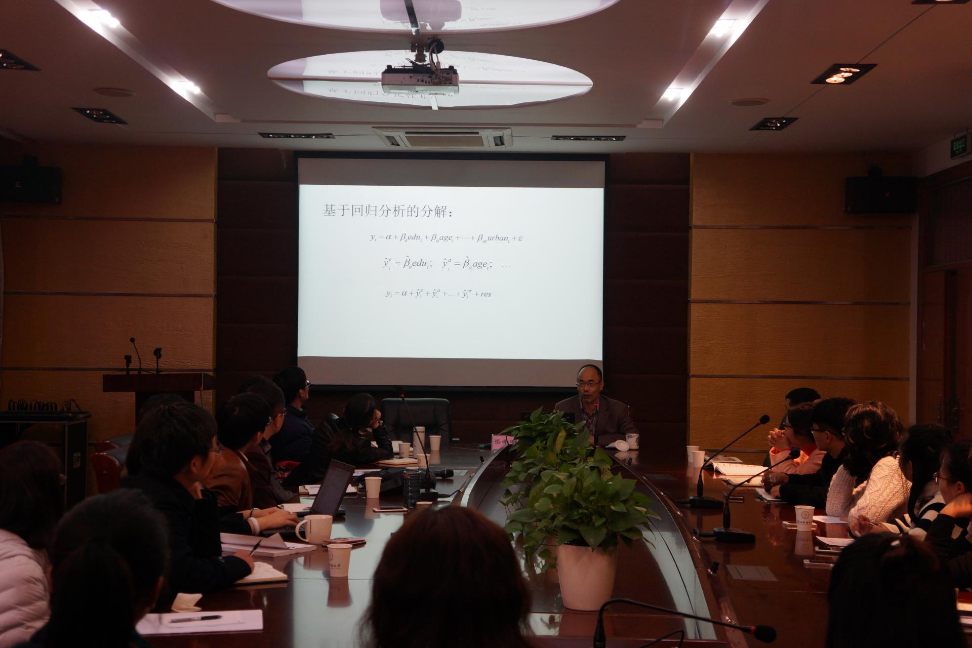 岳老师采用最新的中国家庭收入调查数据(CHIPS),运用基尼系数分解方法,深刻探讨社会保障支出对收入的分配作用。总体而言,财政性社会保障支出对收入分配的调节作用具有重要作用,能够有效调节个人收入,缩小贫富差距。但是,部分社保支出项目的分配起着扩大收入差距的作用。岳希明教授的讲学逻辑严谨、数据详实、旁征博引,赢得了在场师生的阵阵掌声。报告结束后,同学们纷纷举手提问,现场气氛热烈。报告会后,与会师生表示受益匪浅,进一步激发了对财政学专业的热情与研究兴趣。