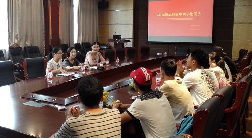 在305会议室举行新生中秋茶话会。院党委书记杨春玲、副书记徐丽玲、学办主任胡卓文与包括少数民族新生在内的部分学生代表参加了此次活动。