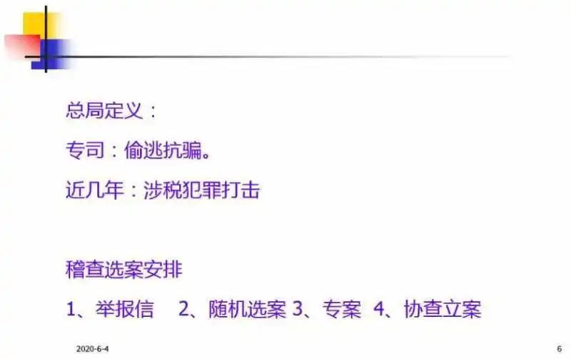 章凯锋学长介绍了国家税务总局当前内设司局的划分,说明了税务稽查作为税务部门“征、管、查”的一份子,在国家征税体系中占据重要地位。税务稽查是税收征收管理工作的重要步骤和环节,是税务机关代表国家依法对纳税人的纳税情况进行检查监督的一种形式。依据各种税收法律、法规及各种政策规定。具体工作包括日常稽查、专项稽查和专案协查。