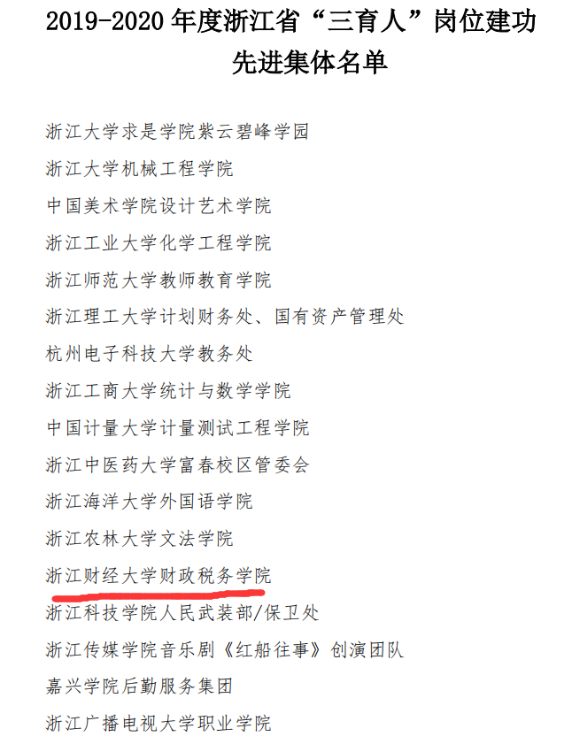 与其余172个单位和组织被授予2019- -2020年度浙江省“三育人”岗位建功先进集体。