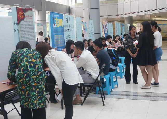 团委学生会举办的2016实习招聘会在文化中心一楼大厅顺利举行。此次招聘会邀请了中国平安股份有限公司、万联证券有限公司、浙江链家房地产经纪有限公司、宁波银行杭州分行等60余家企业参与。这些企业涉及行业广,提供的实习岗位多,涵盖电子信息、人力资源、市场营销、平面设计、财务会计等多个专业。丰富多样的岗位为我校学生的实习职位选择提供了很大的空间。