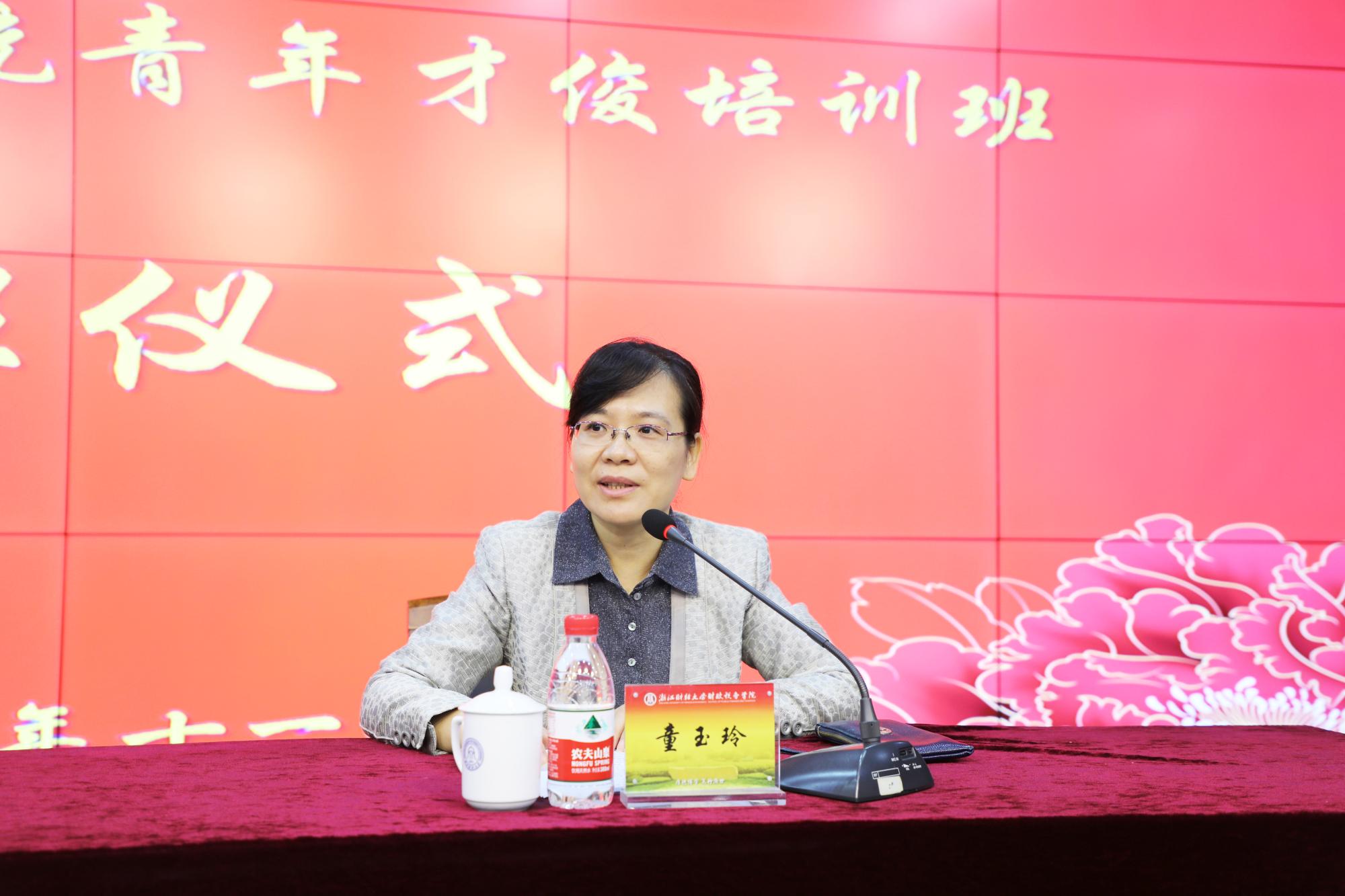 童玉玲首先对此次培训班的开班表示了祝贺,对所有学员的到来表示了欢迎。随后介绍了学校及学院的基本情况,她指出,学院与浙江省税务系统有着深厚的历史渊源,双方一直保持着良好的交流合作,学院与浙江省税务系统联合开展青年才俊班,为打造一支具有国际视野、战略思维、德才兼备、善于管理的税务人才队伍,为税收现代化提供了人才保障,也进一步促进了双方在税务实务领域的交流合作,深化了校地合作。