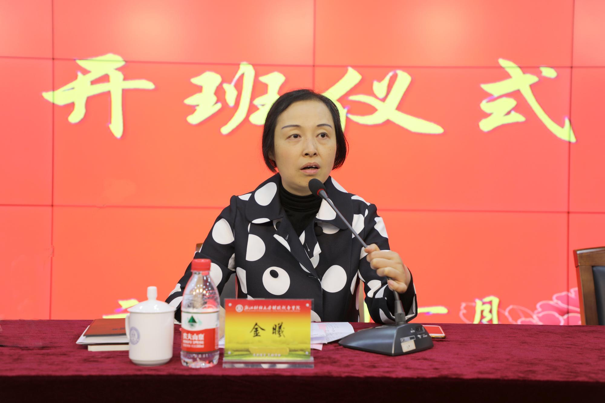 在财税人才培养中发挥的重要作用,并对此次浙江省税务系统青年才俊班的顺利开班表示祝贺。她在讲话中介绍了本次培训的背景、重要意义和师资情况。金曦处长要求全体学员,要深刻理解本期培训的重要意义;要珍惜机会,在培训过程中充分利用学校优质资源,认真学习、勤于思考,相互交流;要严守各项纪律,自觉维护税务干部的良好形象。她指出,该项目为省局主办的青年后备干部培训班,注重税务干部的政治素质和行政能力培养,旨在提高参训学员的政治、经济理论水平,强化廉洁从政的意识;拓宽思维,提升思辨能力和执行力,从而打造一支政治素质强、业务能力突出的后备干部队伍,为我省税收事业发展贡献力量。
