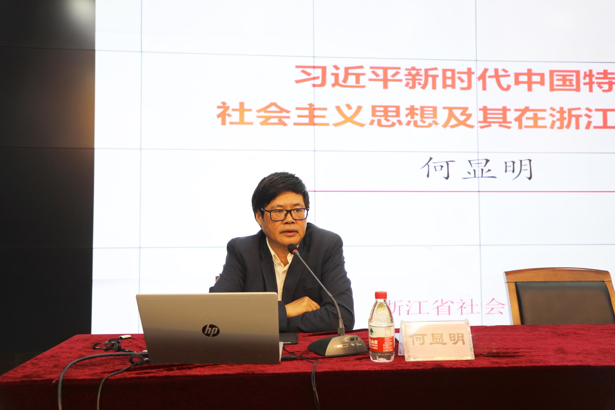 开班仪式后,省社科院院长何显明先生应邀为培训学员带来题为“习近平新时代中国特色社会主义思想及其在浙江的萌发”的开班第一课。