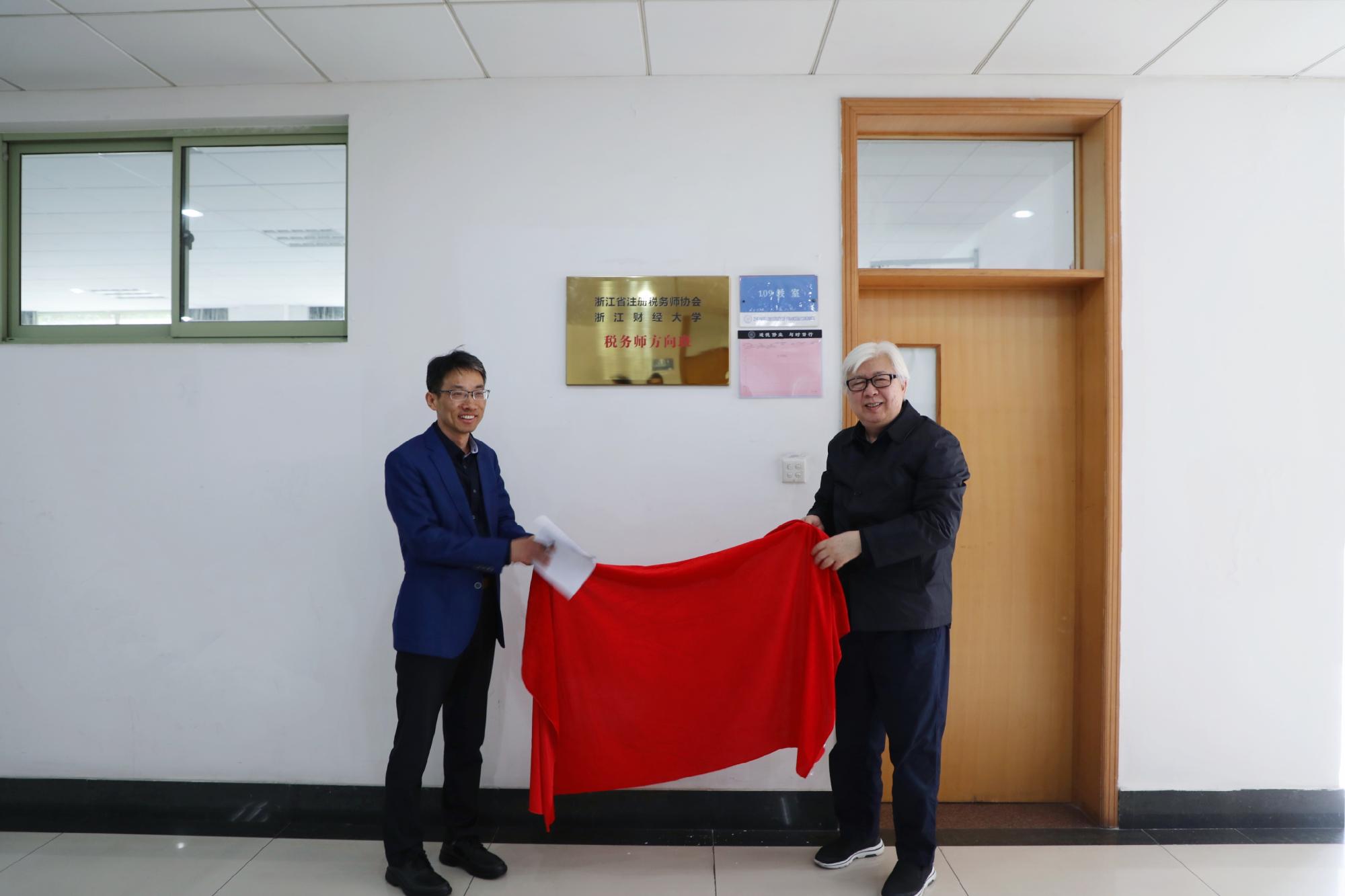 最后,在领导嘉宾和师生的见证下,李永友与邢幼平为税务师方向班揭牌。全体师生在学院楼前合影。