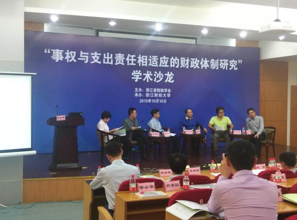 10月18日,由浙江省财政学会主办,我校财政与公共管理学院承办,学校地方财政金融协同创新中心协办的“事权与支出责任相适应的财政体制研究”学术沙龙在我校隆重举办,来自省内外高校以及财税系统等政府部门的专家学者出席本次学术沙龙。沙龙开始前,我校党委副书记,中国财政学会理事,浙江省财政学会副会长,钟晓敏教授致欢迎词,浙江省财政厅副厅长,浙江省财政学会副会长金慧群发表讲话,本次沙龙由浙江省财政学会秘书长莫红民主持。