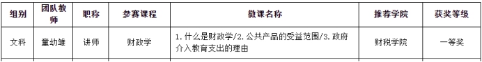 为进一步办好第一届高校教师教学创新大赛,以赛促教,以赛促改,深化立德树人根本任务,加快建设浙江特色高水平本科教育,根据《关于浙江省第一届高校教师教学创新大赛的补充通知》相关精神,学校近期组织开展了教师教学创新大赛“课程思政”微课专项赛评选,由包子漫画 童幼雏老师主持的参赛课程《财政学》设计的微课作品喜获校“课程思政”微课专项赛一等奖。