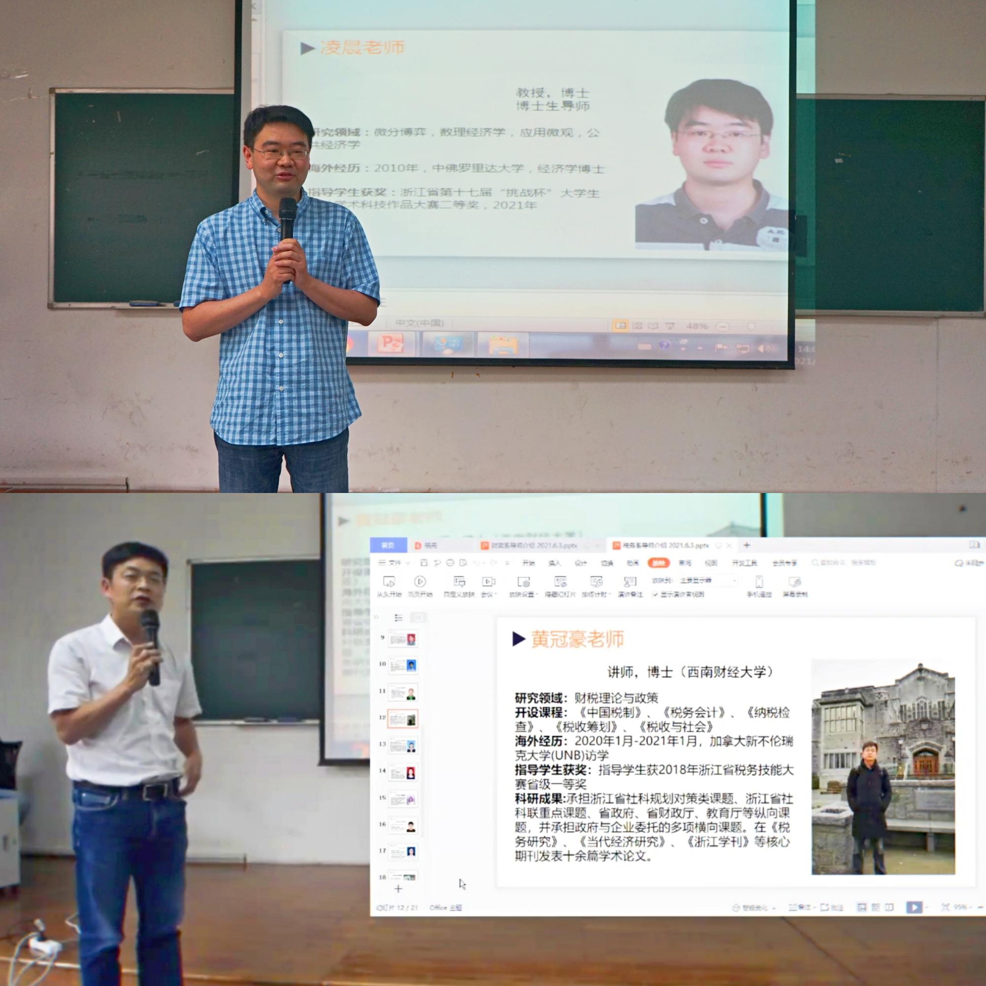 紧接着财政系主任凌晨、税务系副主任黄冠豪对专业的相关情况进行了简要的介绍,帮助同学们快速了解专业概况。财政系、税务系各位到场的专业老师依次与同学们见面,向学生们介绍了自己的专业研究领域、教学风格以及个人兴趣爱好等,也对同学们在大学期间的学习和生活提出了要求和期望。