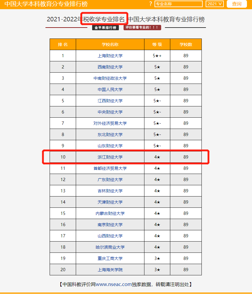 财政学、税收学专业排名双双进入全国前10。