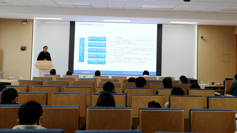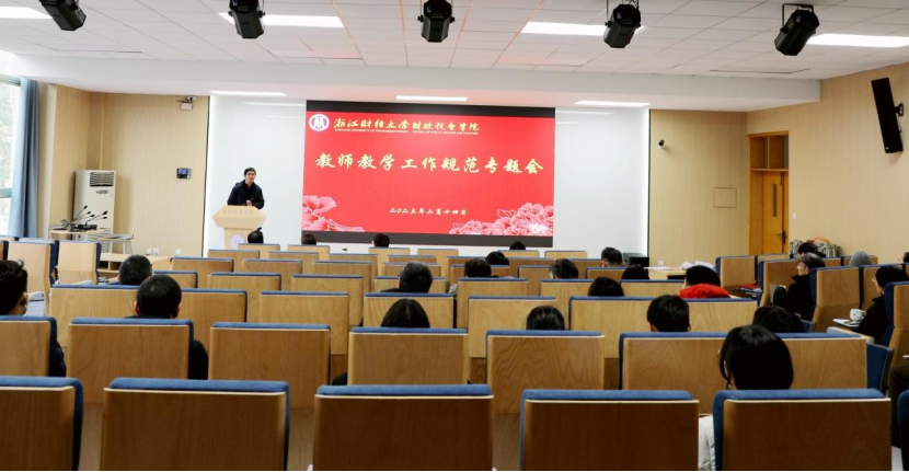 本科生课程考核管理办法>的通知》(浙财大〔2021〕243号)两个学校教学规范性文件,结合党委巡查中发现的问题,对学院教师日常教学工作中需要进一步规范的地方进行了重点梳理和全面解读。与会教师纷纷表示,通过本次专题会议,对教学规范有了更全面的认识,特别是对课程备课、课堂教学、成绩管理、试卷评阅、试卷归档等细节问题有了更加具体的了解,对今后在教学工作中的规范化操作大有裨益。