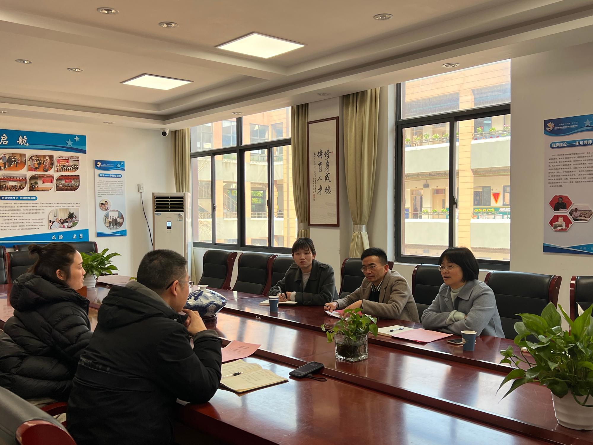 2月16日上午9:30,学院党委副书记徐丽玲一行到杭州市基础教育研究室附属学校启源小学进行合作洽谈,学办主任李永涛、团委负责人苗咚瑾、辅导员向龙陪同前往,受到了启源小学副校长胡双红和德育处虞擎擎的热烈欢迎。