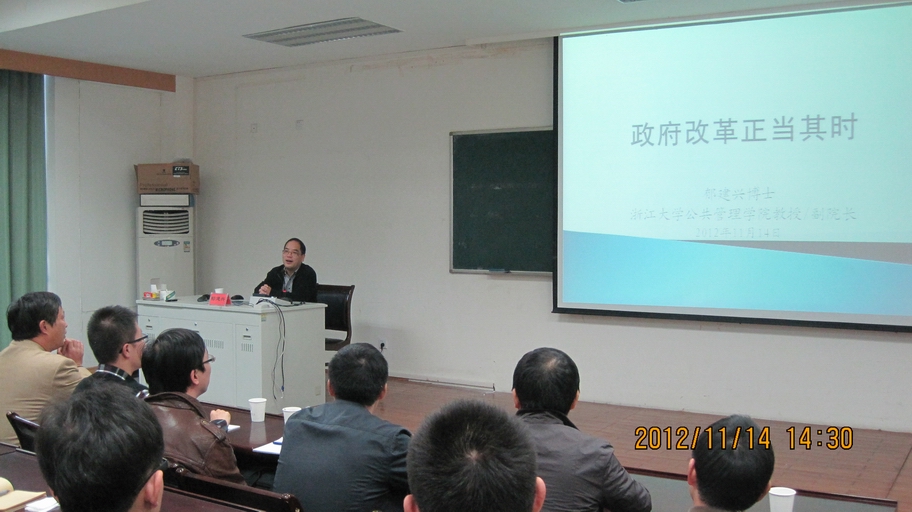 郁教授的讲座清晰又不失诙谐幽默,理论联系实际并结合中外具体的案例,使抽象的政府治理模式变得更形象和直观。在讲座最后的互动环节,郁教授对师生们提出的问题进行了精彩的解答。两个小时的讲座使大家对“政府改革”问题有了新的认识,拓展了同学们看待问题的思维和角度,使在场的同学们受益匪浅。