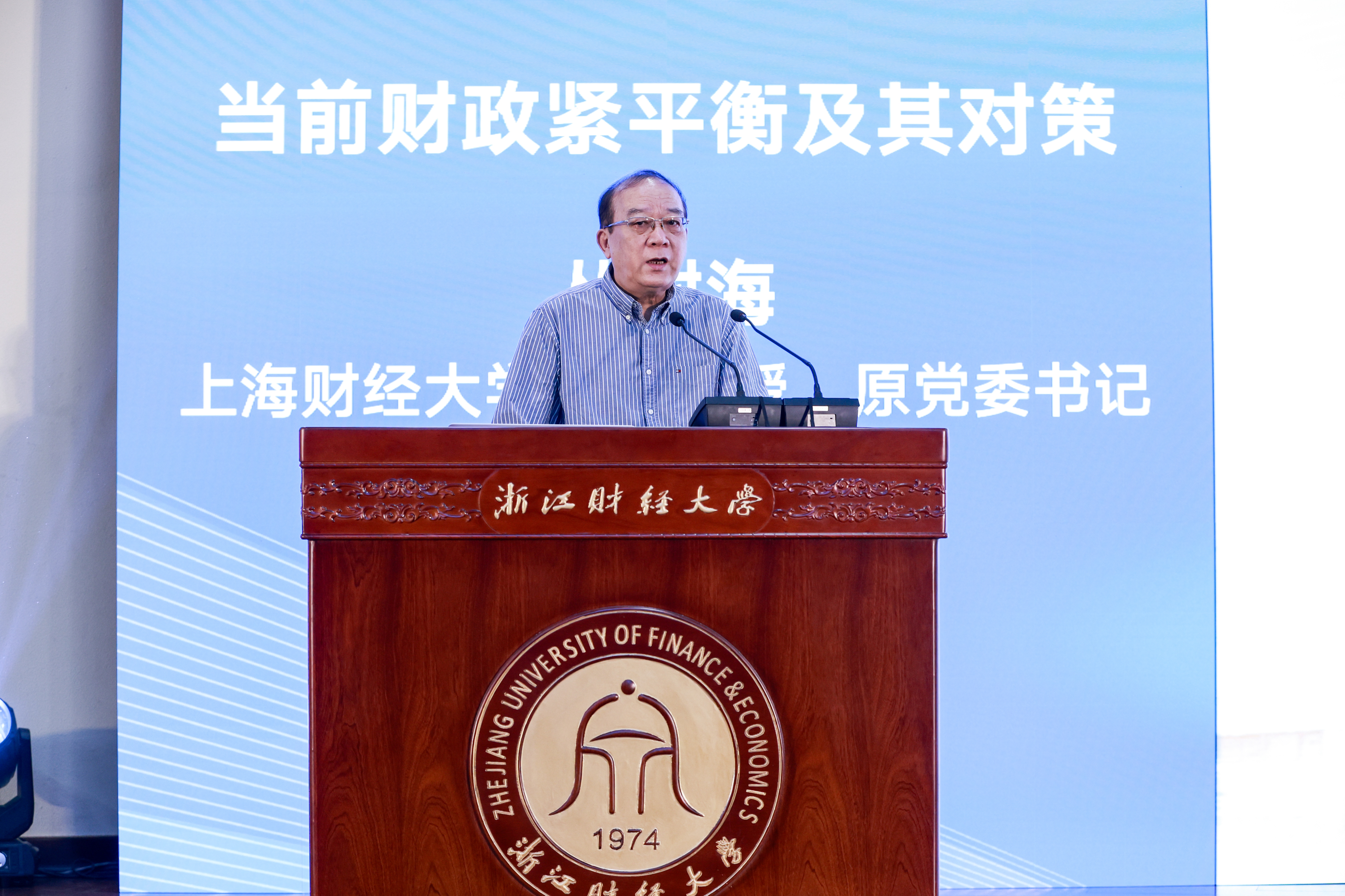 院长付文林主持主旨发言环节。上海财经大学资深教授、原党委书记丛树海,中国人民大学一级教授、财政金融学院原院长郭庆旺,南开大学经济学院教授马蔡琛,山东财经大学党委副书记谢申祥,南京财经大学副校长张炳,复旦大学经济学院刘志阔教授等6位专家作主旨发言。