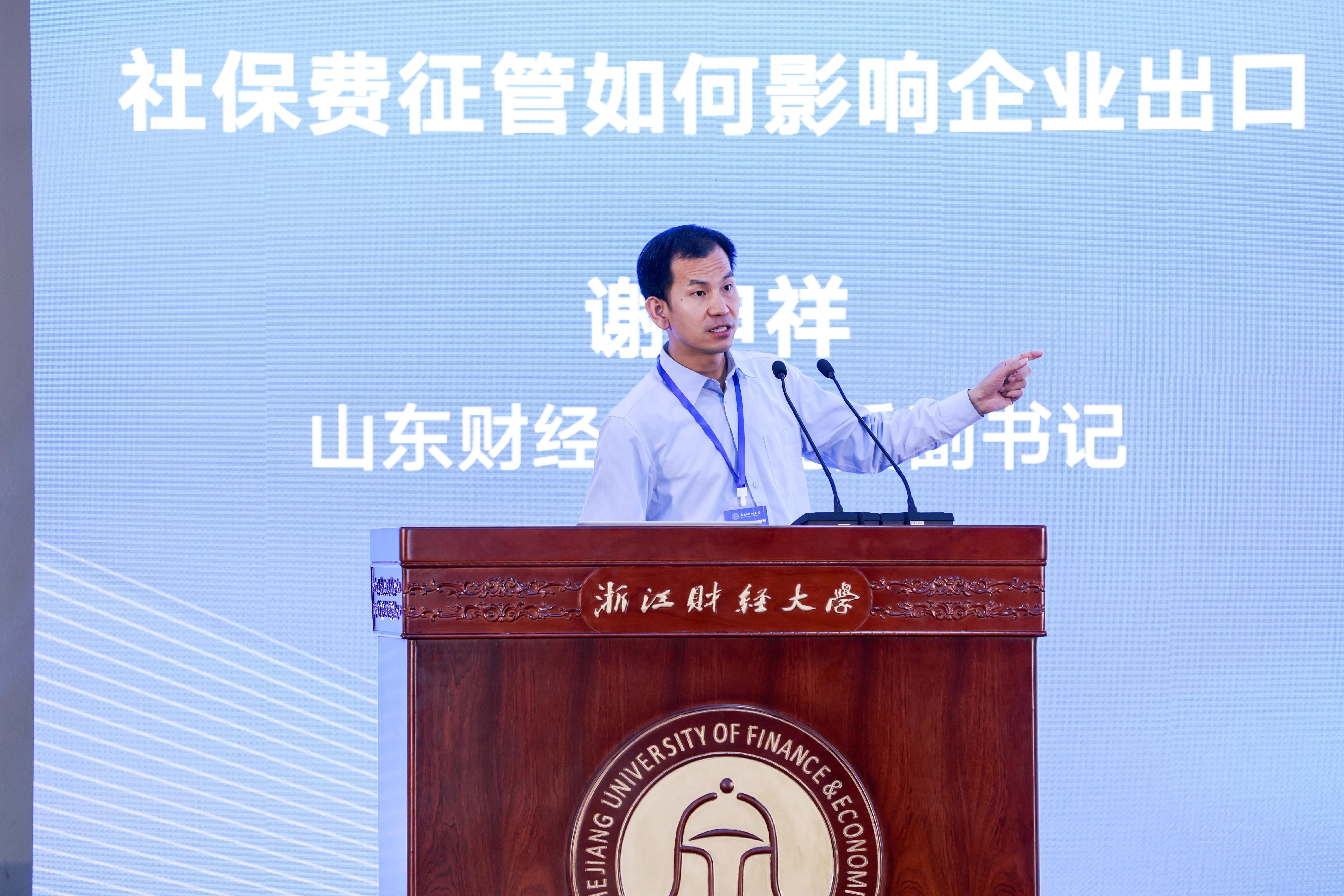 谢申祥的发言题目是“社保费征管如何影响企业出口”。他阐述了增强社保费征管对企业出口的影响,指出加强社保费征管会提高企业的劳动成本,促使企业加大中间品投入,而中间品替代效应会通过提高利润率进而影响企业出口。因此,要充分利用财税和社会保障政策,为中国企业“走出去”添砖加瓦。
