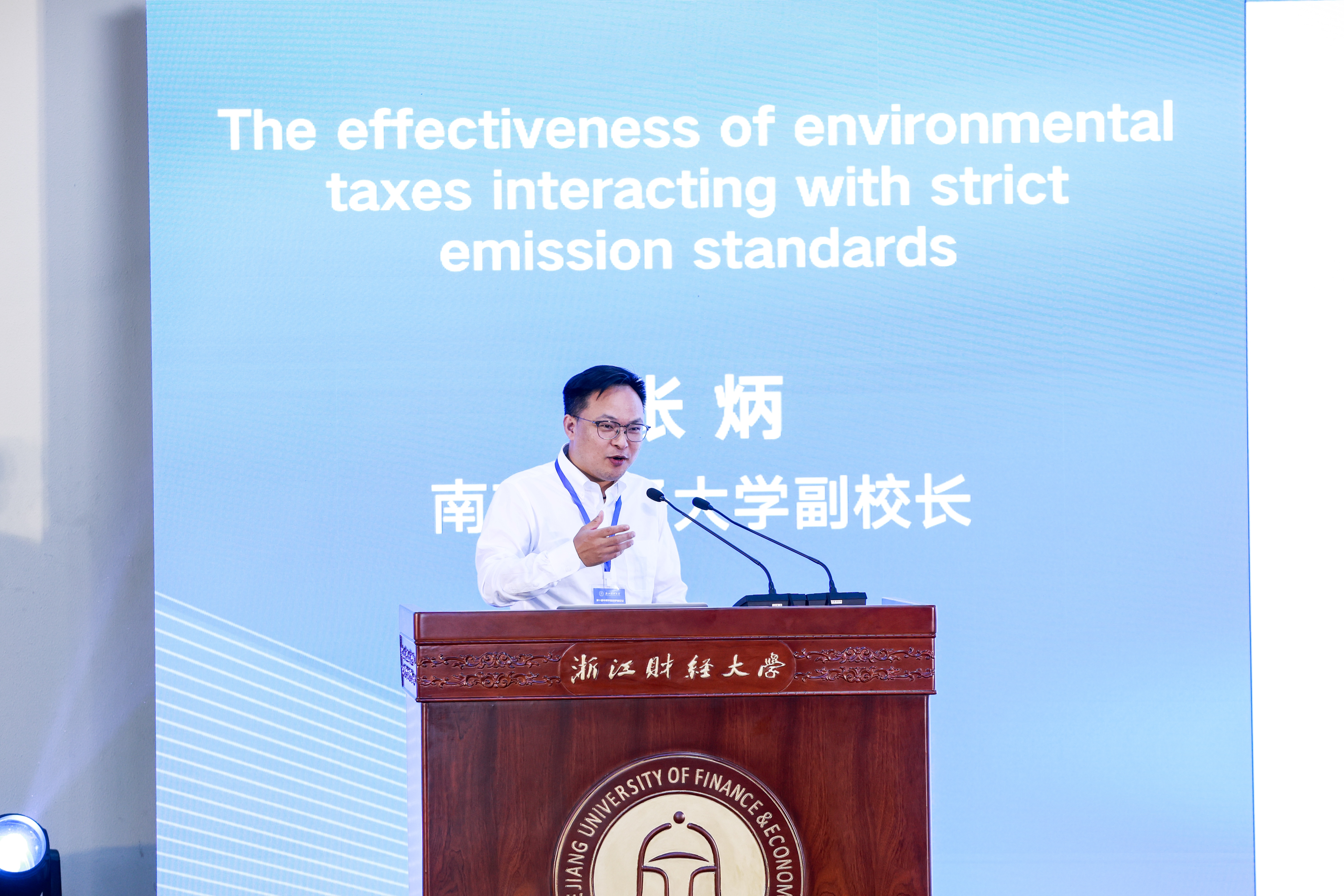 张炳的发言题目是“The effectiveness of environmental taxes interacting with strict emission standards”。他梳理了我国环境治理框架与政策体系的演变,认为提升环境保护税有效抑制了污染排放,但对于那些已达到较高排放标准的企业,环境保护税的抑制作用显著减弱,未来的政策制定需综合考虑,实现税收与环境治理效果的平衡。