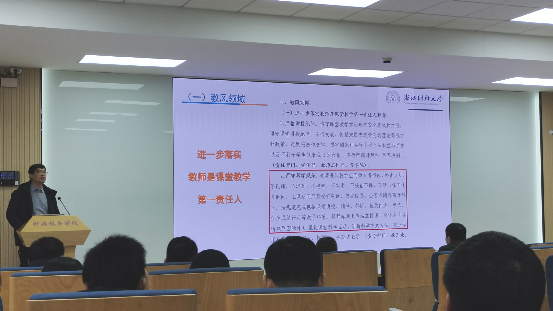教学副院长张帆对两个文件进行了深入解读,逐字逐句剖析文件中的各项规定,并结合学院实际工作情况,阐述了如何在日常教育教学过程中贯彻落实文件精神。例如,在教风建设方面,将加大教师教学荣誉体系建设、选树好课典型、改进优课优酬制度等;在学风建设中,会加强课堂督查、强化班主任和辅导员工作职责、实施学习赋能成长行动等;在作风建设中,从强化服务意识、严格工作纪律等多个方面着手改进机关作风。