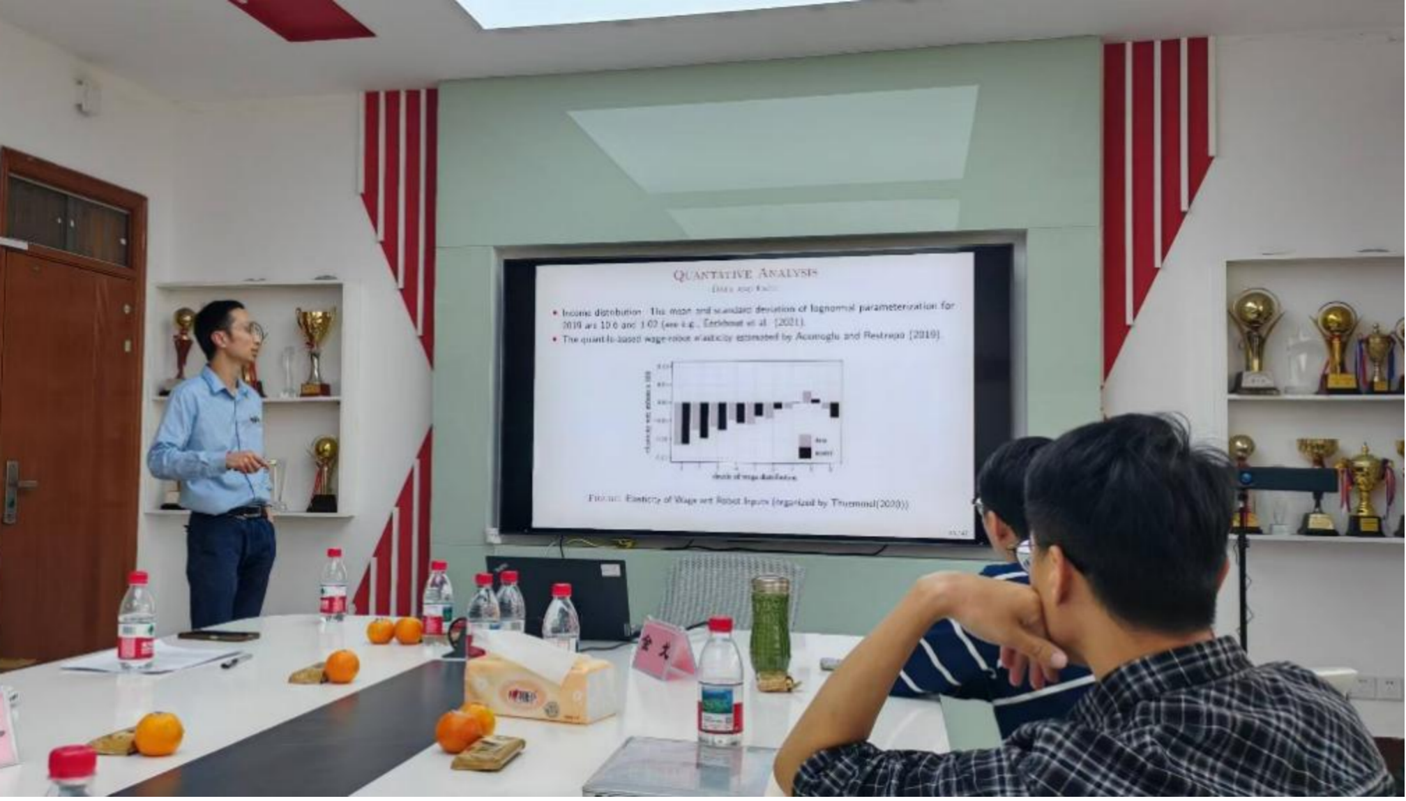 李太龙老师评价李文健老师的研究为“难得一见的扎实好文章”,并围绕多个维度展开深入追问:如何区分自动化与机器人、AI的概念,机器人税的本质及其与资本税的差异,以及自动化监管在经济学中的研究缺口。他强调需厘清模型核心逻辑,如任务分层(Task(z)与Task(i))的功能性差异,以及Case1与Case2的比较等。