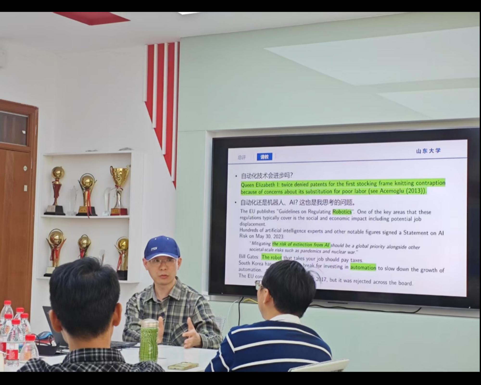 金戈老师充分肯定李文健老师在揭示自动化对劳动力市场结构性冲击、构建任务分配与最优税收融合框架、以系统阐释机器人税等政策协同机制,以及通过技能异质性建模与参数校准展现理论深度与实践价值上的突破性贡献。同时建议补充常规效用函数的稳健性检验,并针对动态能力可变性、信息约束下z*不可观测等现实挑战,论证税收与监管工具在动态不确定中的有效性边界,以提升政策设计的理论普适性。