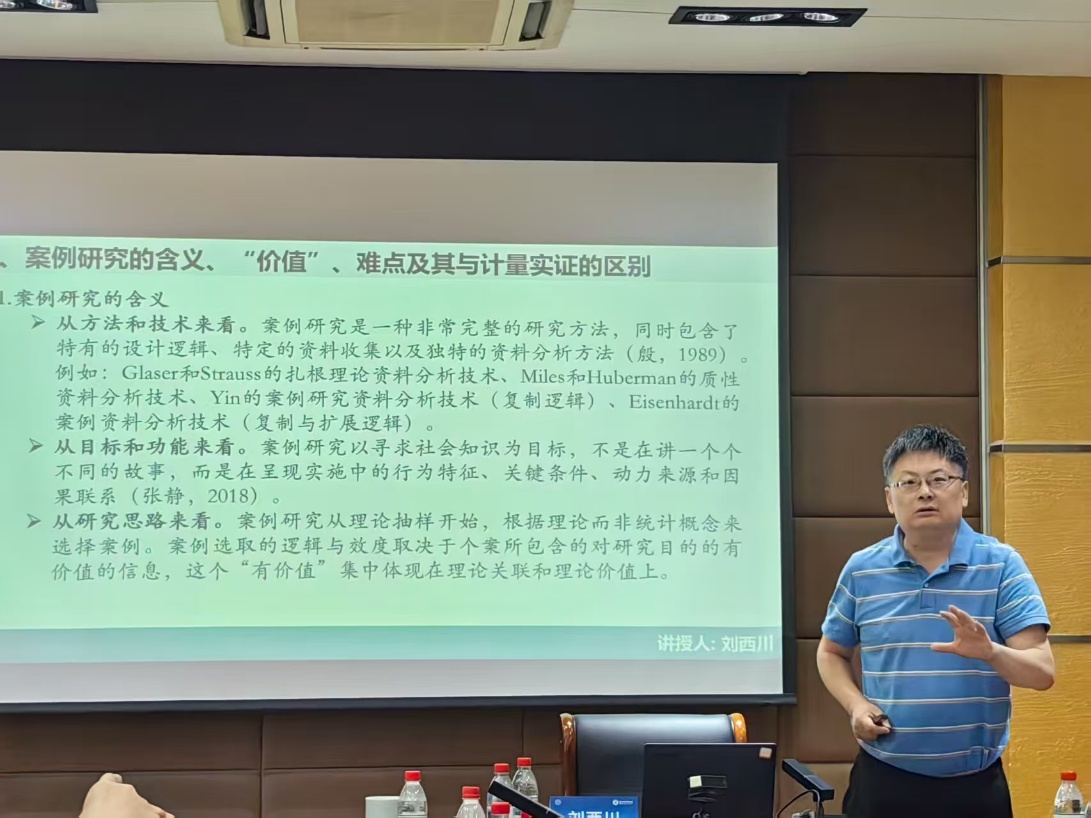 通过具体案例,刘教授演示了如何通过实地调研揭示实践逻辑,指出面对面访谈和直接观察对获取真实信息的关键作用。他同时分析了文本分析法与准实验方法在理论贡献上的局限性。