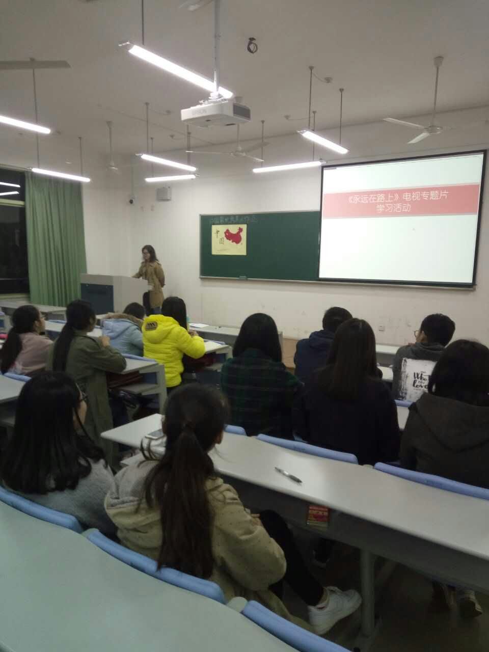 组织全体教职工党员在学院楼307会议室共同观看大型电视专题片《永远在路上》。