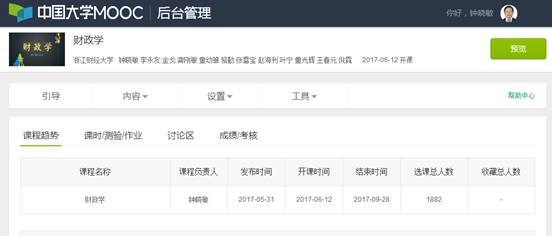 6月12日上午10:00,我校王牌课程之一的《财政学》在教育部直管的爱课程网站“中国大学MOOC”平台正式开课了!