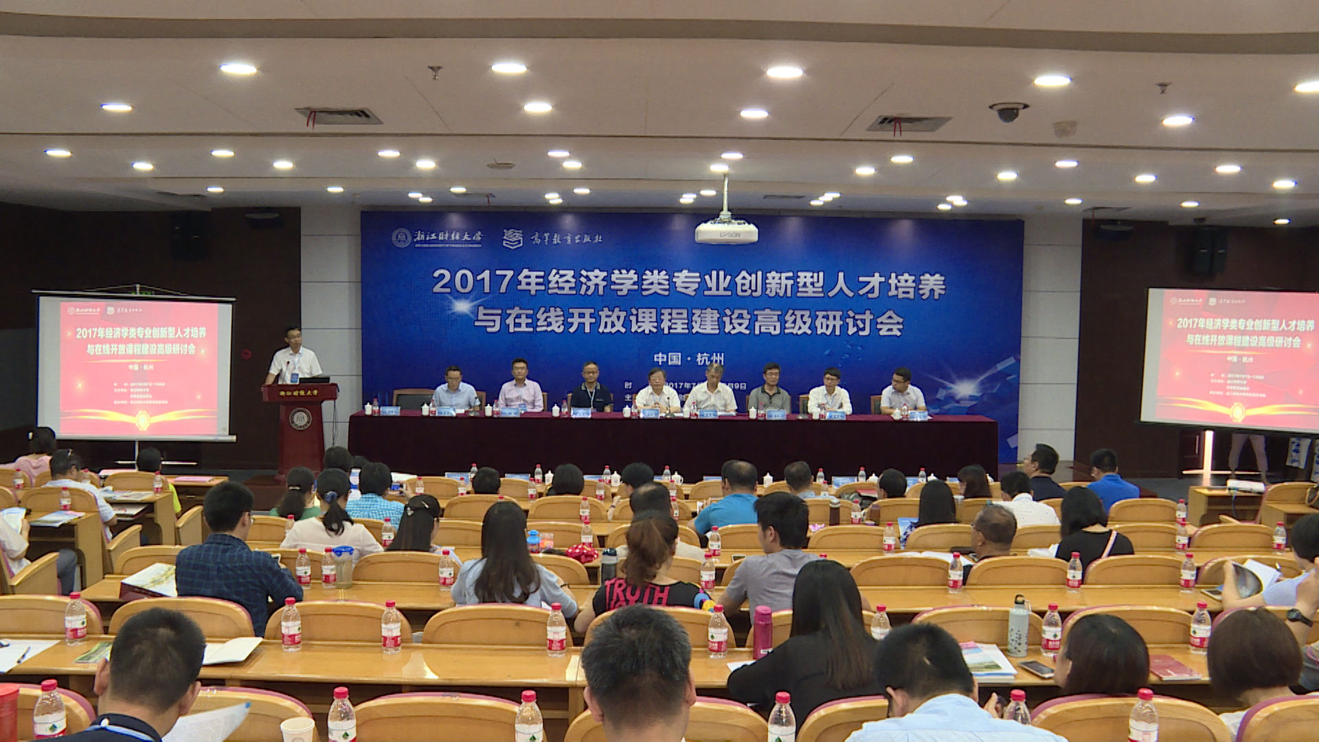 在会议的第一天,我校校长钟晓敏、武汉大学经济与管理学院文建东、清华大学经济管理学院潘文卿、北京吉利学院校长霍伟东等七位教授分别做了关于财政学慕课与传统课堂教学的有效衔接、经济学教学中如何引入在线课程技术、互联网时代计量经济学课程建设与教学、创新人才思维训练等方面的主题报告,就创新型人才培养及在线开放课程的实践经验与成果进行了交流与分享。