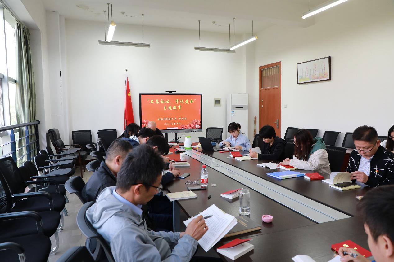 教工第一党支部围绕“两书一章”开展“不忘初心、牢记使命”主题教育,会议由童幼雏书记主持。