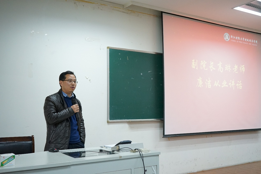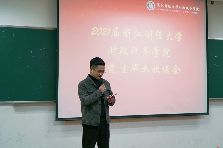 随后,司言武代替学院致辞。他强调,财税学院享有“浙江省财税干部的摇篮”的美誉,是一个优秀的人才培育地,希望大家怀揣着入校时的热忱,坚守初心,走向社会,并祝愿同学们前程似锦。