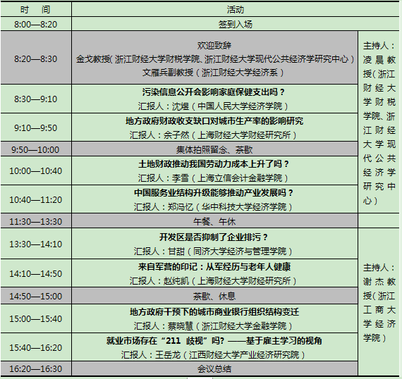 第9期香樟经济学Seminar(杭州)会议议程(暂定)